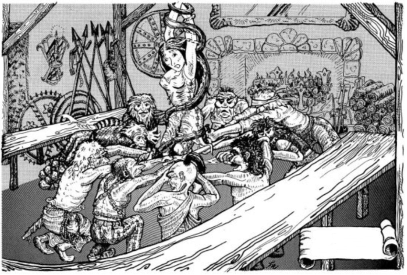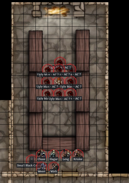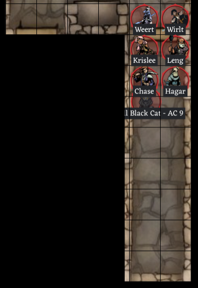 At the other end of the corridor, just given the layout of this section of the palace, you expect to find another secret door. Hagar does find one (rolled 18). He opens it to find the backside of a tapestry. You all move past the tapestry into a large hall, too large to see all of it with the light you are carrying.