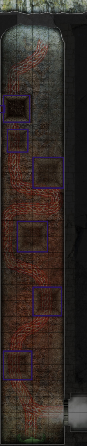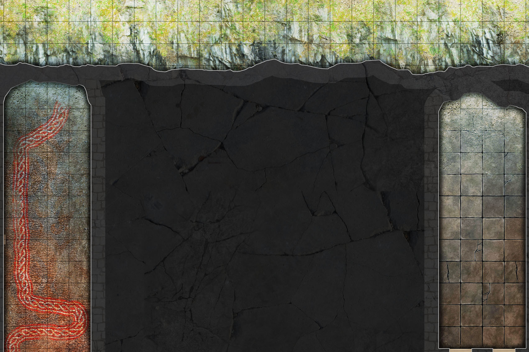The party started searching the cliff in several areas and found two separate entrances, one in the middle of the map and one to the east.
