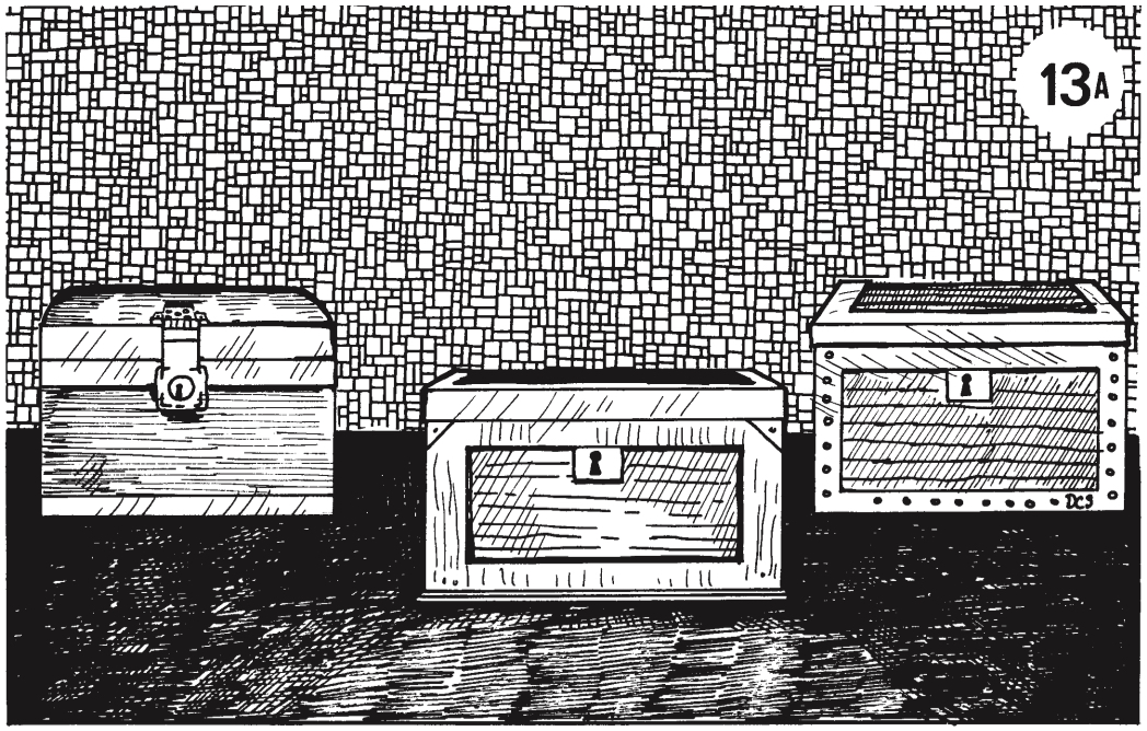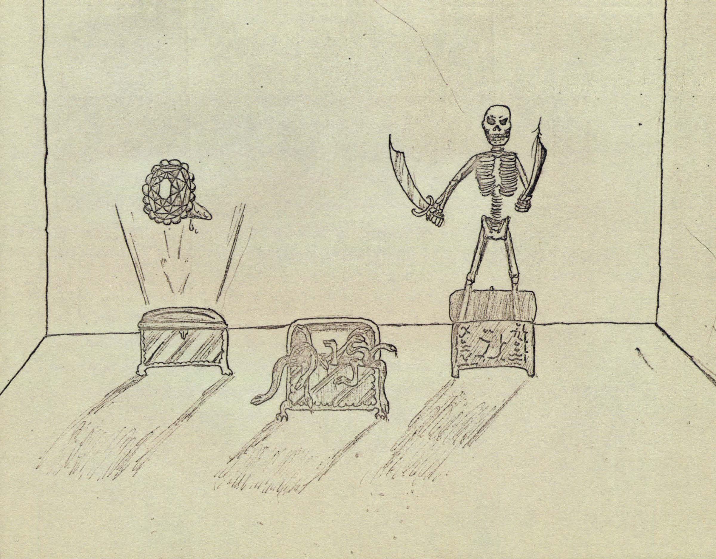 second opened and closed the silver chest, the party glimpsed a clear glass or crystal box inside. The third opened the chest