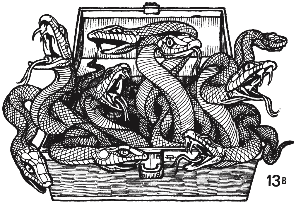 to see that there were snakes (asps) inside. One escaped before the kobold could close it again.