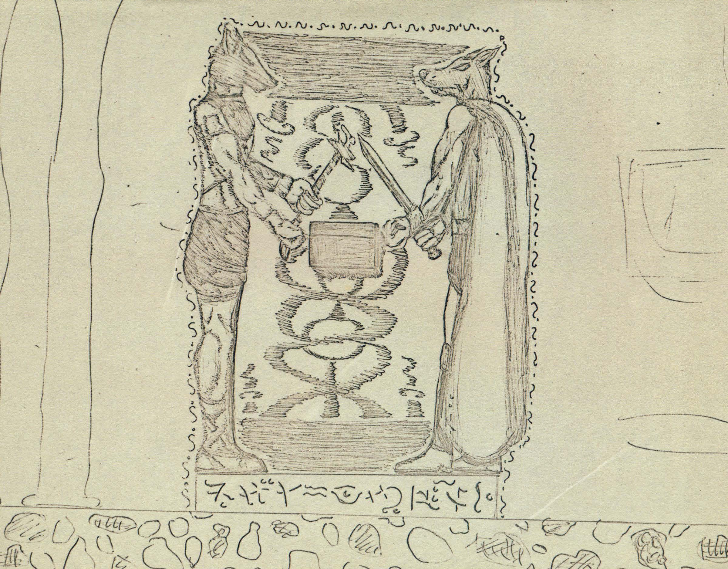 Old Man From Scene 24 then came up with a plan to use a Monster Summoning spell to summon some monsters to use to explore the arch and to use to open the chests/set off the traps. He ended up summoning 4 Kobolds. The first he tied the rope to and sent it through the archway while holding the rope. The rope immediately went slack, pulling it back, it was clear the rope had been severed.