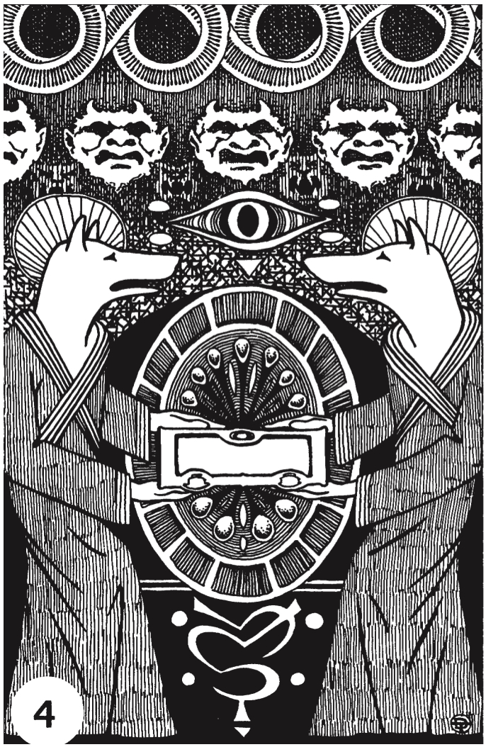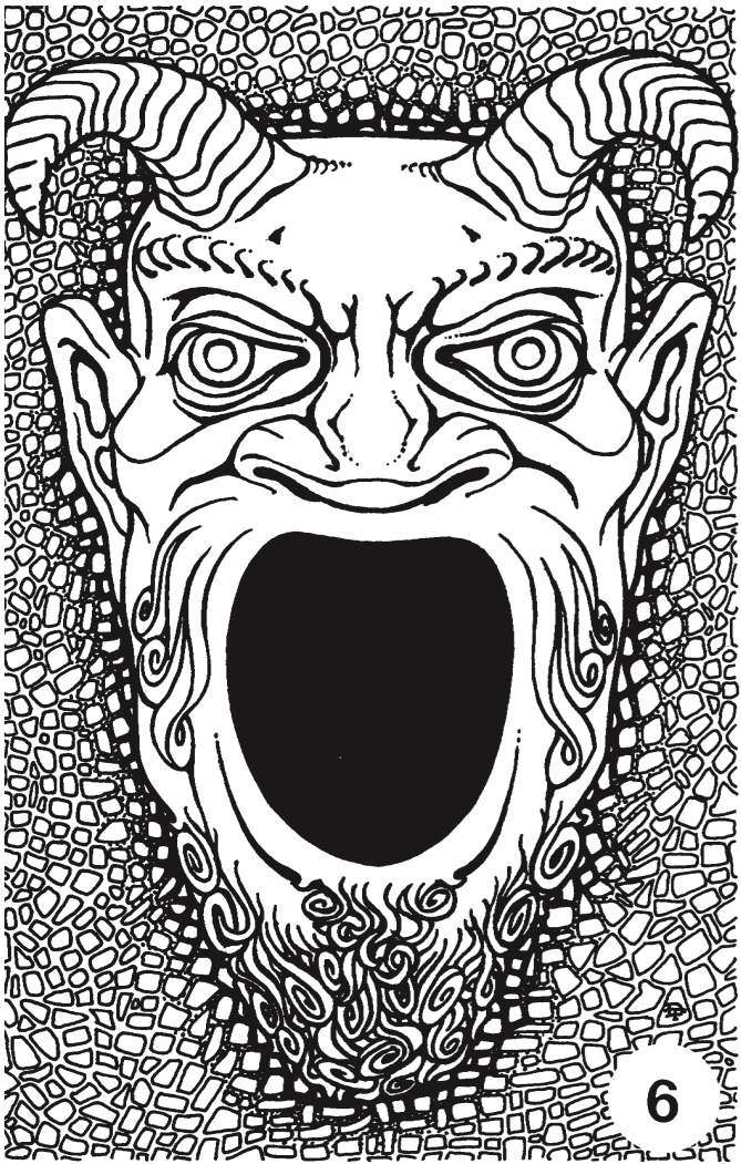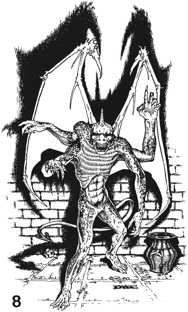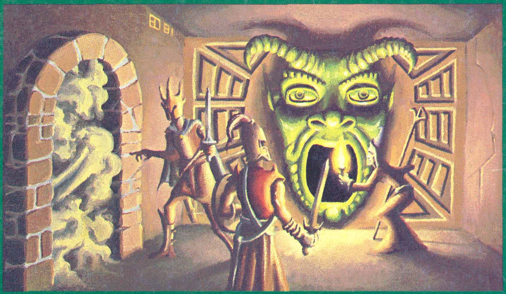 Next, the painting of a door with a monster reaching through bars in a barred window ended up as actually hiding a real door. They broke the plaster all apart, unlocked the door, and entered a room with a 4-armed Gargoyle. They defeated the Gargoyle, but not before Mike lost half his hit points.