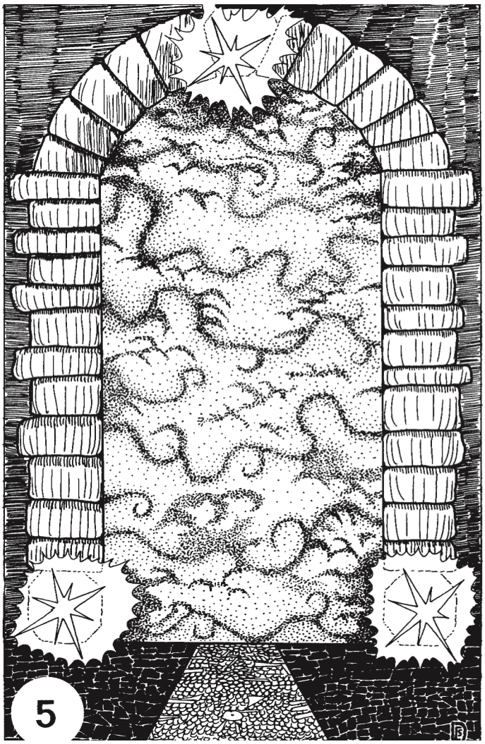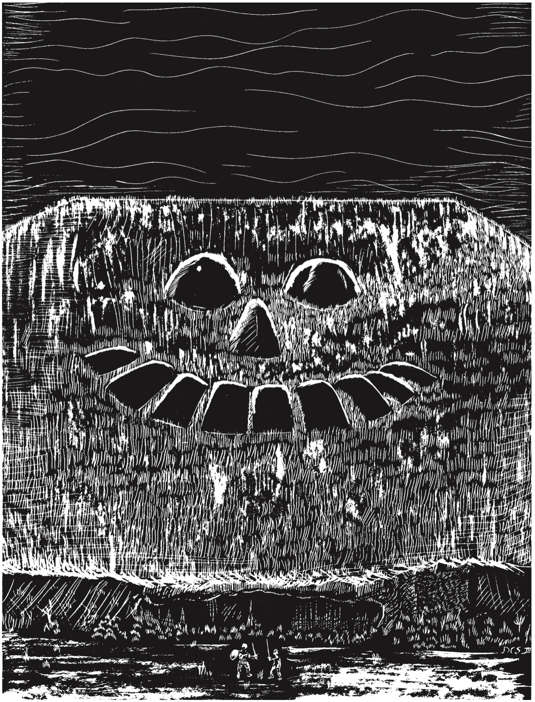 The group started at the hill of the tomb, which has stones on the top arranged in such a way that it looks like eyes, nose and mouth of a skull (Gary Gygax's art is actually really poor for this one).